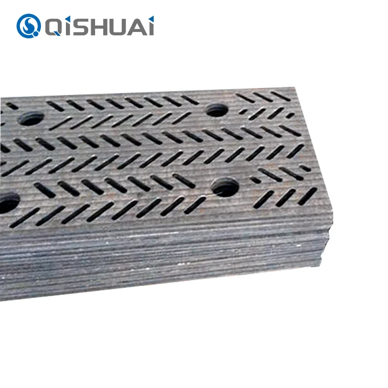 वियर प्लेट्स स्थापित करने से पहले, कृपया सुनिश्चित करें कि वेल्डिंग या चिपकने वाली बॉन्डिंग की गुणवत्ता सुनिश्चित करने के लिए माउंटिंग सतह सपाट, साफ और तेल, जंग या अन्य अशुद्धियों से मुक्त होनी चाहिए। वेल्डेड माउंटिंग के लिए संगत रासायनिक संरचना वाले इलेक्ट्रोड का चयन करना। गर्मी से प्रभावित क्षेत्र को टूटने से बचाने के लिए वेल्डिंग से पहले वर्कपीस को पहले से गरम कर लें। खंडित और स्तरित वेल्डिंग विधि का उपयोग करना। ओवरहीटिंग से बचने के लिए वेल्डिंग करंट और वेल्डिंग गति को सख्ती से नियंत्रित करें। वेल्डिंग के बाद नियंत्रित कूलिंग करना।
