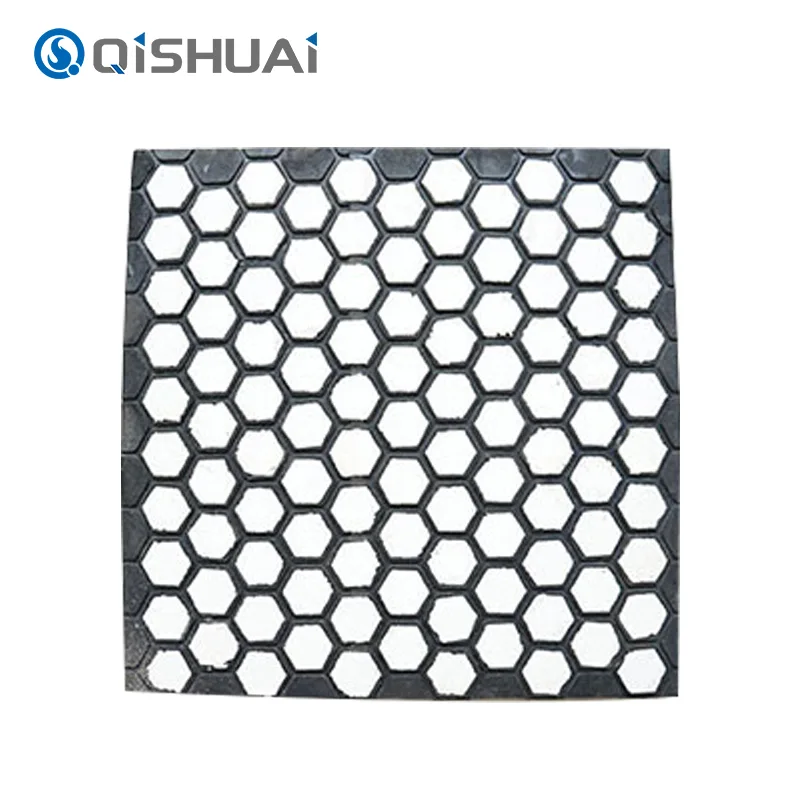 संरचना के निर्माण की प्रक्रिया में, सिरेमिक की सतह को उपचार प्राप्त होता है जो सतह को बदल देता है। इस उपचार से सतह की विशेषताएं और परत के साथ संबंध बनाने की सतह की क्षमता बढ़ जाती है। फिर सिरेमिक और रबर के बीच एक मजबूत बंधन बनाने के लिए उत्कृष्ट बॉन्डिंग गुणों और उम्र बढ़ने के प्रतिरोध के साथ एक उच्च प्रदर्शन चिपकने वाला चुना जाता है। विशिष्ट तापमान और दबाव की स्थितियों के तहत, वल्कनीकरण जैसी प्रक्रियाएं चिपकने वाले को सिरेमिक और रबर दोनों के साथ पूरी तरह से एकीकृत करती हैं। यह रासायनिक बंधन और भौतिक उलझाव पैदा करता है, जिससे सिरेमिक टाइल्स और रबर परतों के बीच एक मजबूत मिलन होता है। यह कंपोजिट वियर सिरेमिक रबर प्लेट का समग्र प्रदर्शन और विश्वसनीयता सुनिश्चित करता है। तीव्र प्रभाव और कंपन के तहत भी, सिरेमिक टाइलें और रबर की परतें कसकर बंधी रहती हैं, संयुक्त रूप से पहनने के प्रतिरोध और प्रभाव प्रतिरोध प्रदान करती हैं।