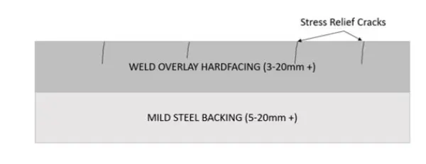 | बड़ी सामग्रियों से प्रभाव, आसानी से विरूपण या टूटना | 1. पहनने के लिए प्रतिरोधी परत क्रूरता2. सब्सट्रेट तन्यता ताकत3. मिश्र धातु परत और सब्सट्रेट के बीच संबंध शक्ति | 1. उच्च-क्रूरता सब्सट्रेट 2. मजबूत और कठोर बंधुआ पहनने-प्रतिरोधी परत | वेल्डिंग, प्लग वेल्डिंग, झुकना (मूल्यांकन किया जाना है) |